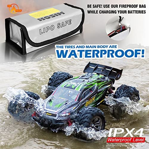 IPX4 Waterproof and 1/16 Realistic Scale with Auxiliary Wheel With 1:16 scale big size and It made of safety, non-toxic, anti- collision and anti-impact material. Built with a steel chassis shaft structure and an independently stimulated shockproof system that reduces impact on unsteady drives.After that the rear come with upgraded Auxiliary Wheel,This can be very effective in preventing the car from falling backwards resulting in unnecessary damage.