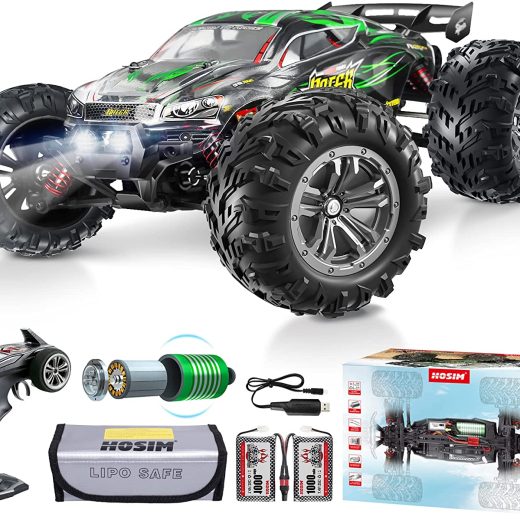 2.4Ghz Accurate System & 2 Different Speed Mode— rc monster truck transmitter with a range of up to 80m/262 ft and 2.4Ghz highly responsive steering and throttle, you can racer with your friends or kids at the same time.furthermore, the super monsters toys has full speed and half speed mode, perfect for children of different ages, when kids are small, you can use half speed mode (23km/h)to avoid damage!