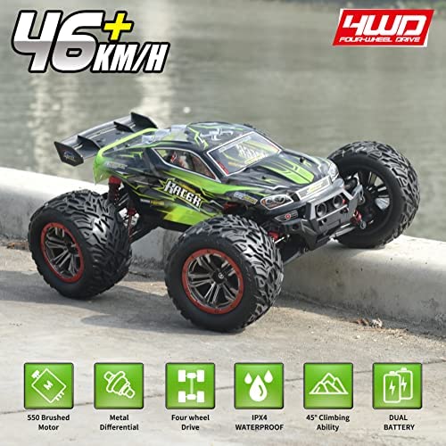 Updated 550 Powerful Motor— Equipped with 550 Powerful Motor which can perform 16000 revs per minute,and it allows the remote control monster truck to have a max speed of 46 Km/h (30mph) with this 1 Motor.
