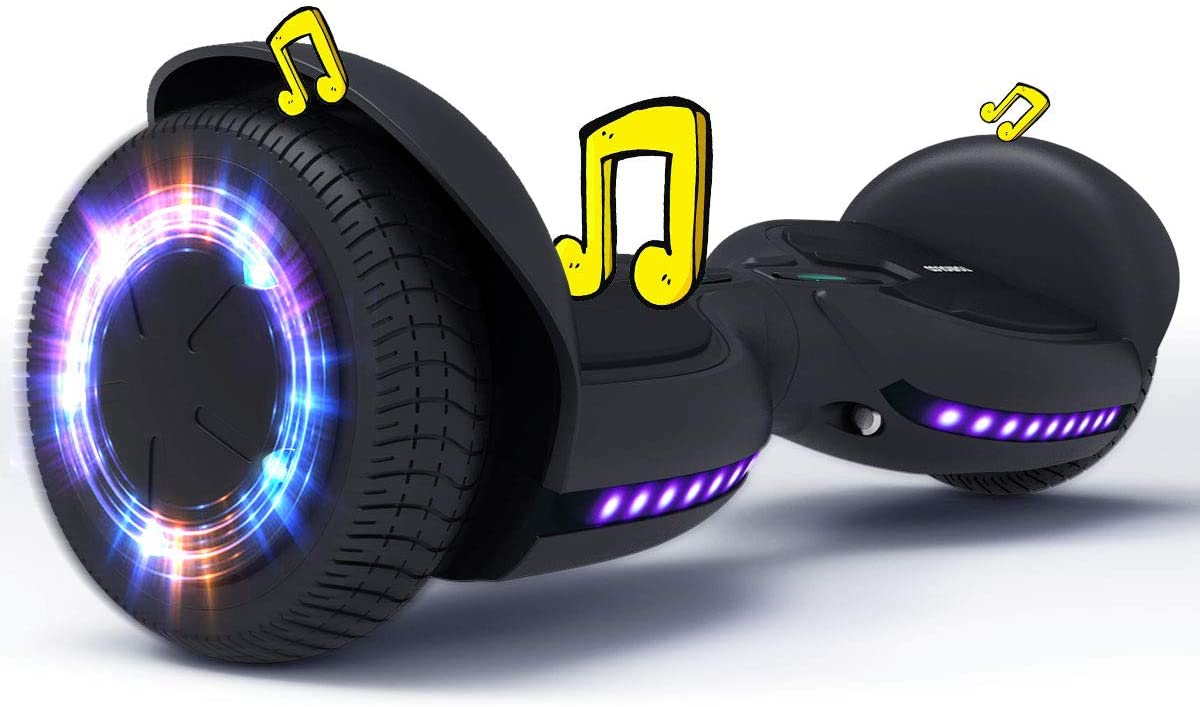 Built-in Colorful Flash LED Lights WheelsTomoloo hoverboards signature colorful LED lights make for a bright and freely cruising experience, which will switch to red, green, yellow, and blue etc randomly and twinkle as the musics rhythm changes.