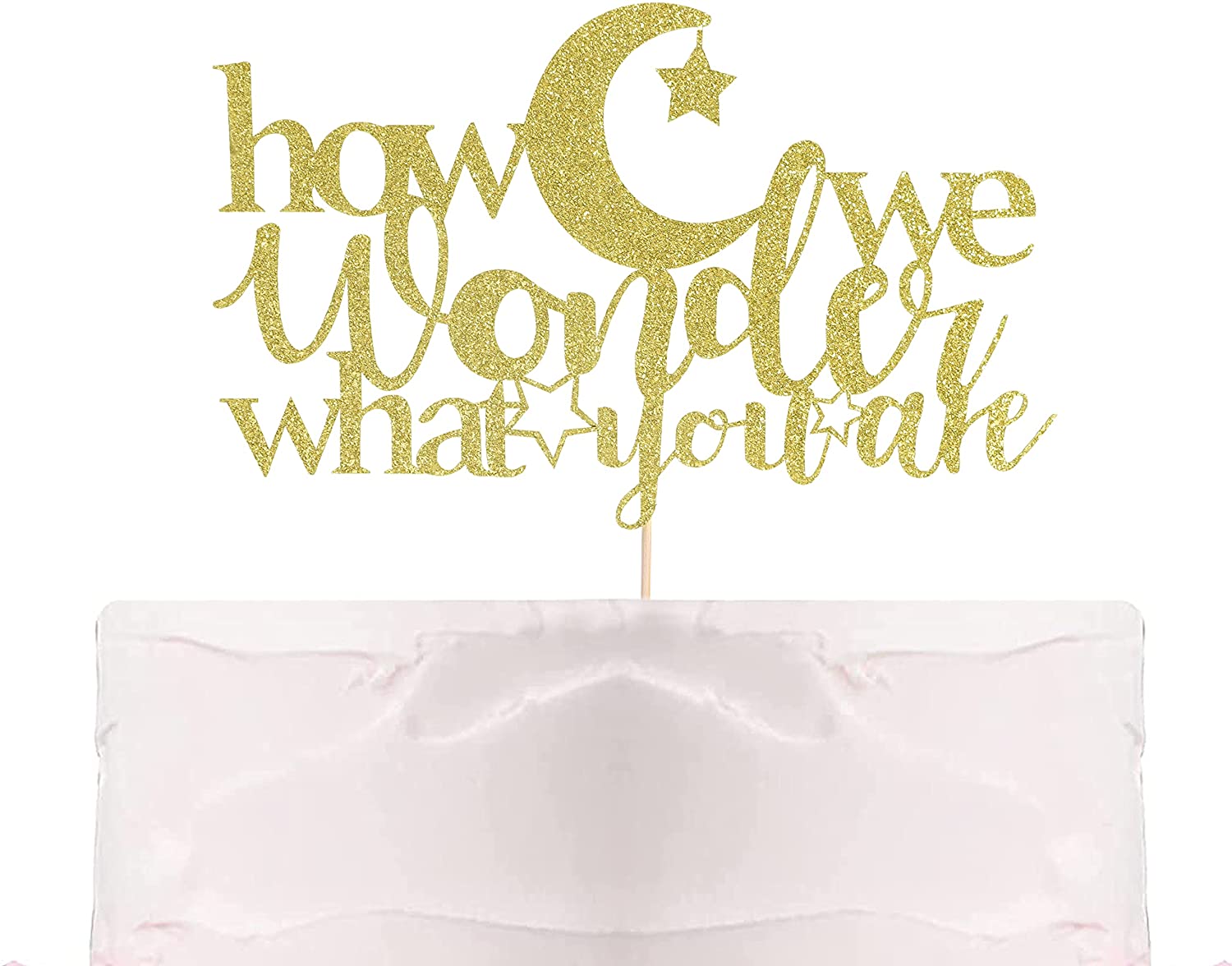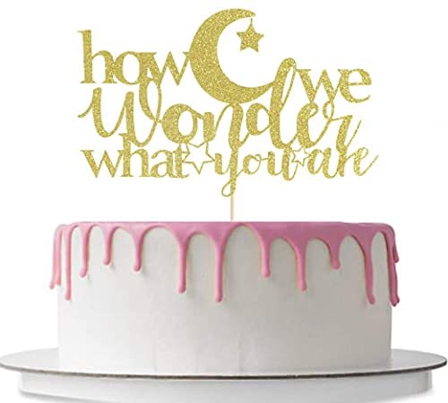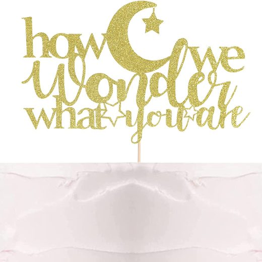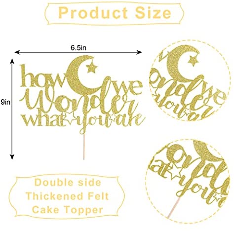 How We Wonder What You Are Cake Topper – Gender Reveal Party, Baby Shower Decoration. Boy or Girl, Baby Sprinkle Decor, Gold Glitter, smash cake, photo props