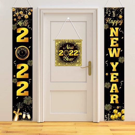 HOWAF 2022 Happy New Year Porch Sign, 3pcs New Years Eve Party Supplies 2022 Hanging Banners for Home Indoor Outdoor Porch Wall New Year Party Lunar New Year Party