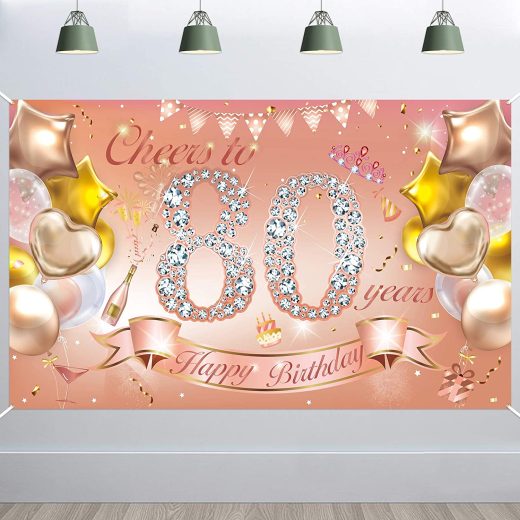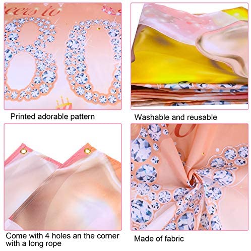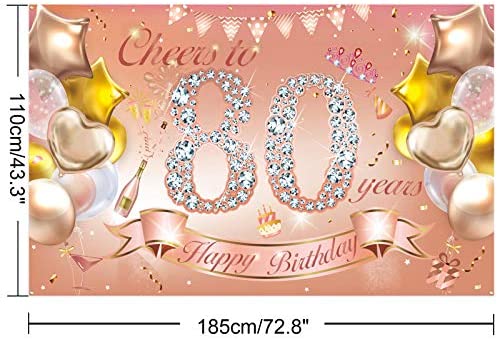 HOWAF Woman 80th Birthday Party Decoration Rose Gold, Fabric Banner for 80th Birthday Photo Backdrop Photography Background, 80th Birthday Outdoor Garden Table Wall Decoration Supplies