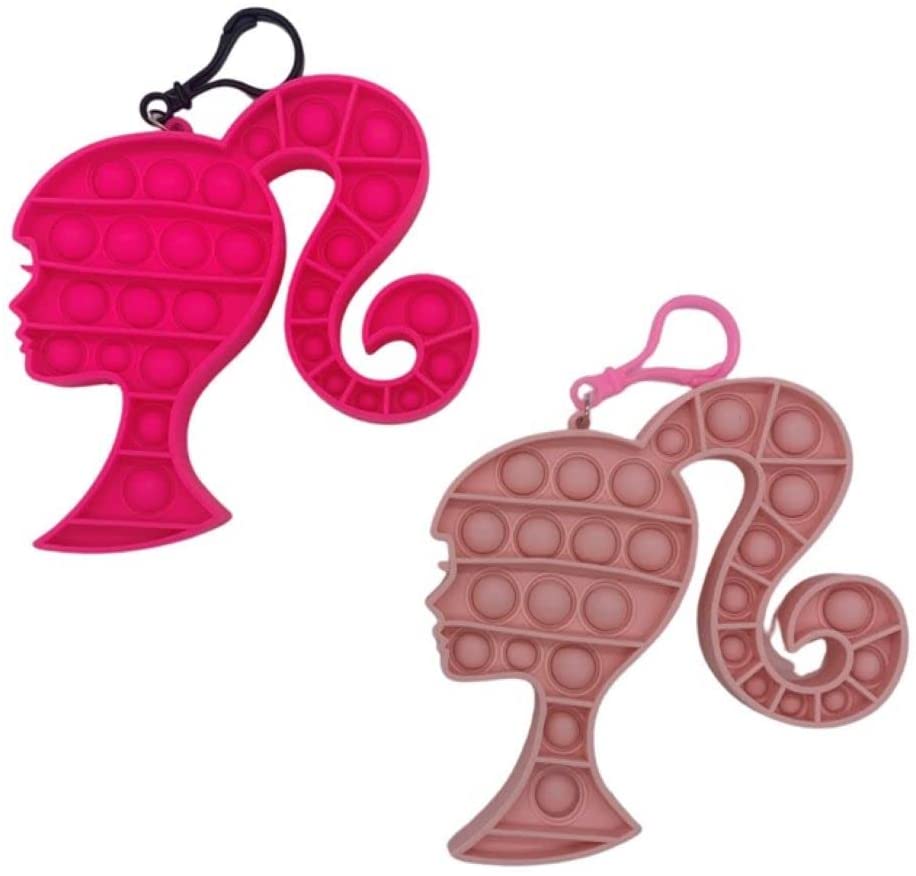 HRE Push Pop Pop Bubble Fidget Toy,Silicone Squeeze Sensory Tool to Relieve Emotional Stress for Autism Kid Adult-Fidget Toy-for ADHD Anxiety,Stress Relief Keychain Barbie Head 2 Pack,Magenta,Pink