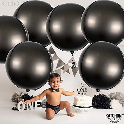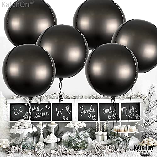 Huge, 22 Inch Black Metallic Balloons – Pack of 6 | Luxurious, 360 Degree 4D Round Sphere Large Black Balloons | Solid Matte Black Mylar Balloons for Black Birthday Decorations, Graduation Decorations