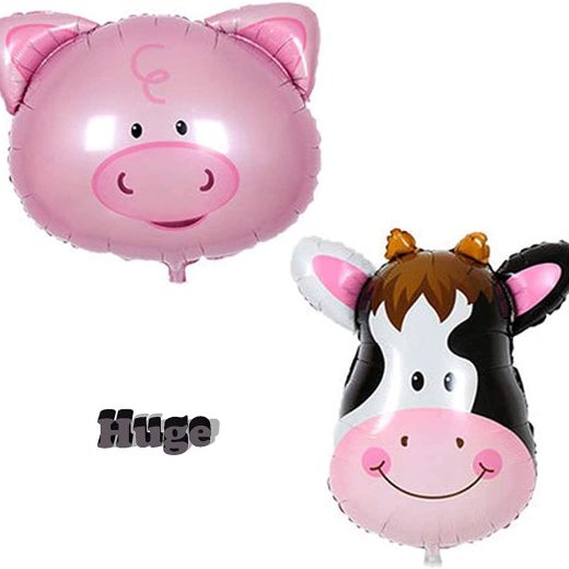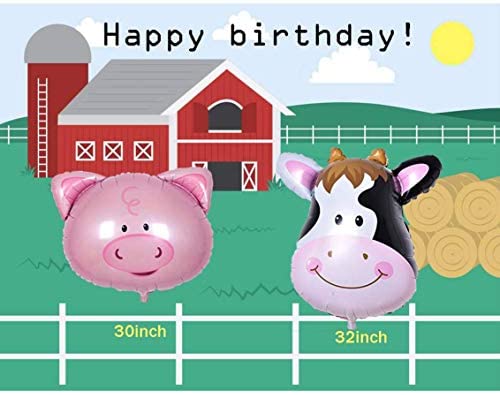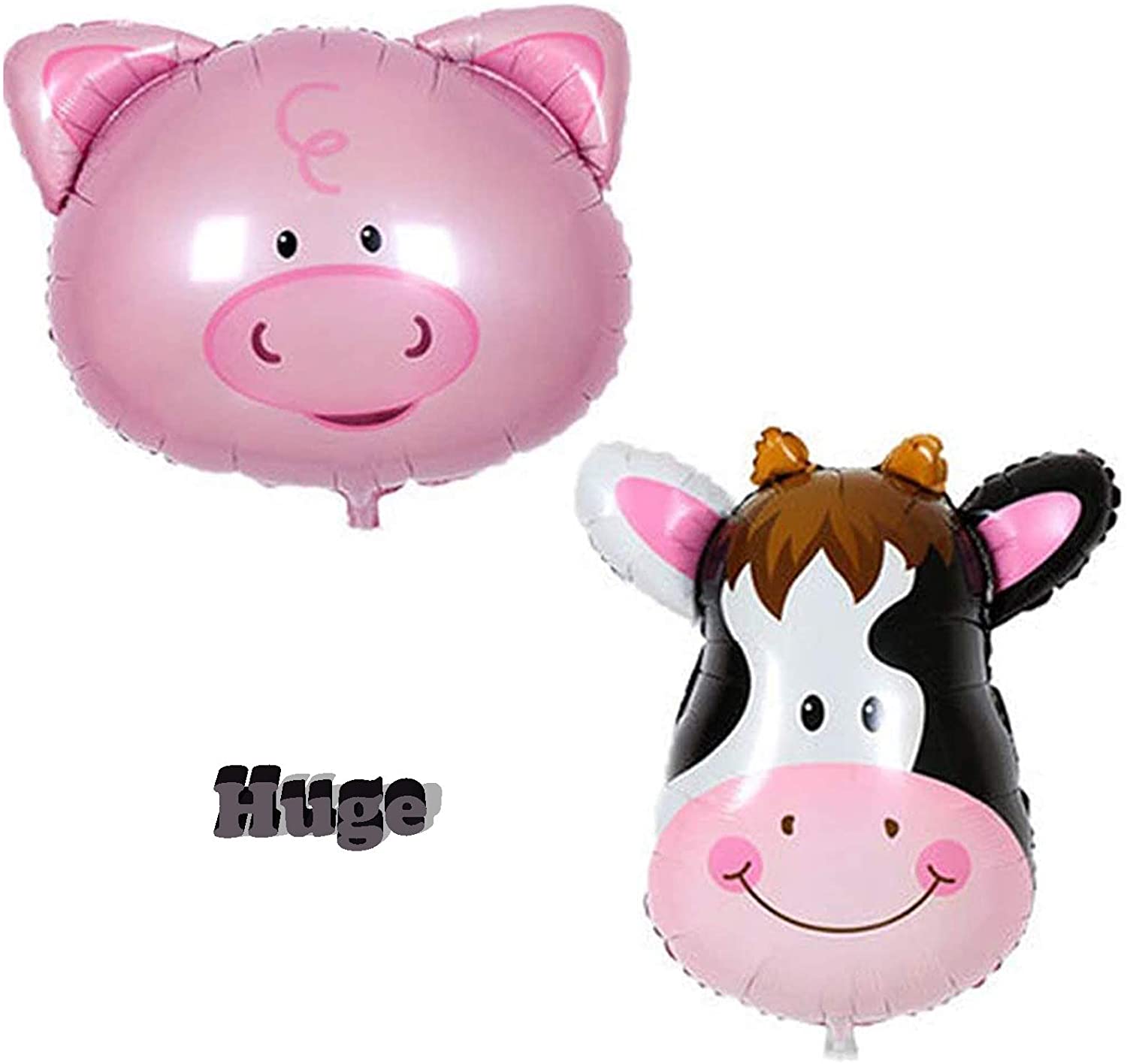 Huge Barn Farm Balloons Animals Birthday Cow Pig Party Animal Head Safari Foil Balloon Inflatable Favors Baby Shower Decorations Supplies (Pig & Cow)