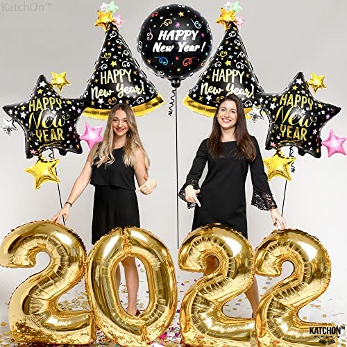 Huge, New Year Foil Balloons – 33 Inch | Happy New Year Balloons for New Years Eve Party Supplies 2022 | New Year Gold Star Balloons for Happy New Year Decorations 2022 | New Years Eve Decorations