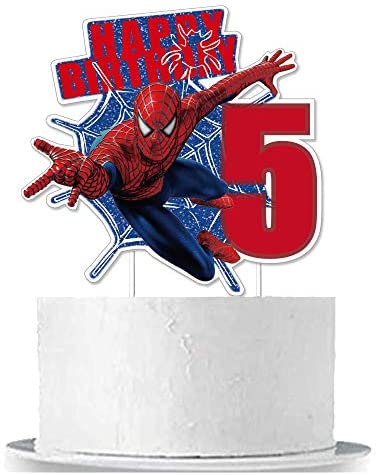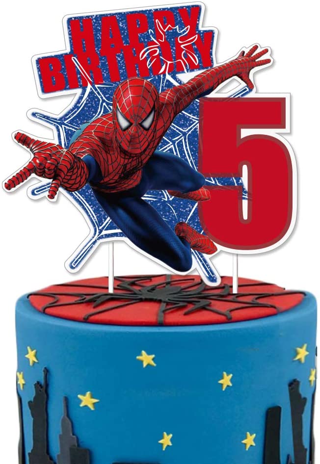 HugeONER Sipder Superhero Birthday Cake Topper for 5th Birthday