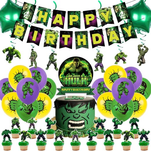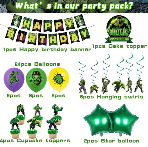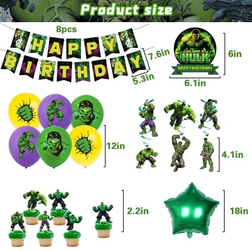Hulk Birthday Party Supplies Movie Theme Party Decoration Include Happy Birthday Banner, Cake Topper, Cupcake Topper, Balloons, Hanging Swirl, Foil Balloons, Party Favors for Kids