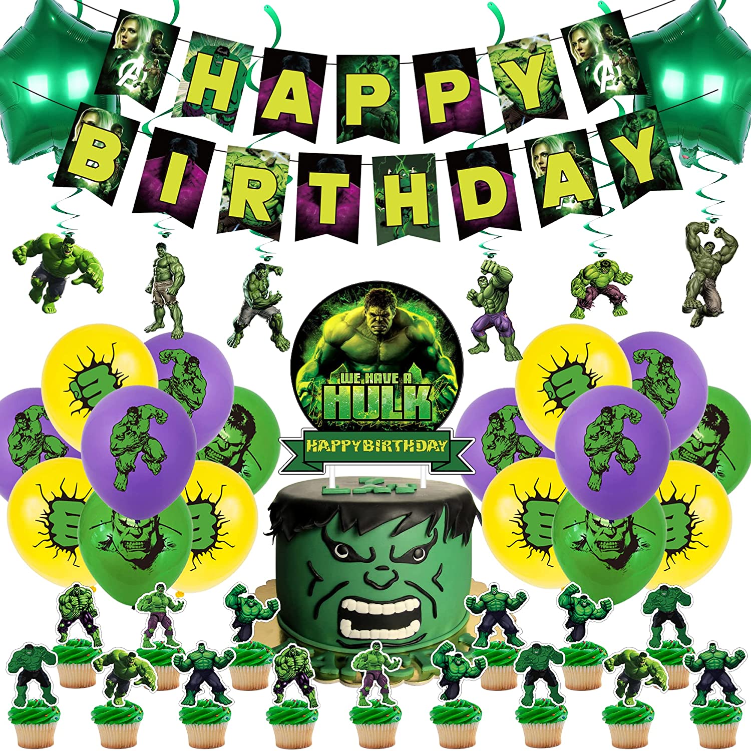 Hulk Birthday Party Supplies Movie Theme Party Decoration Include Happy Birthday Banner, Cake Topper, Cupcake Topper, Balloons, Hanging Swirl, Foil…