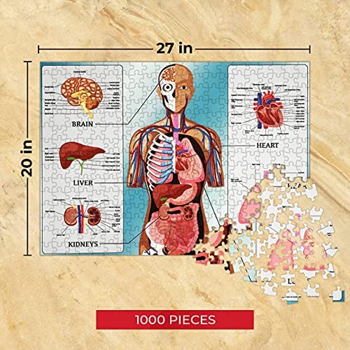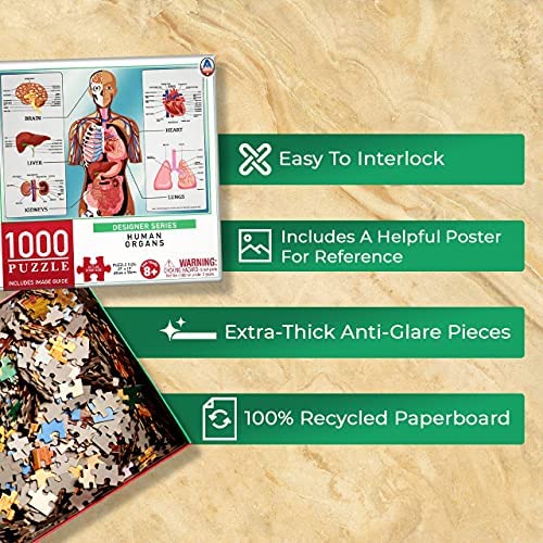 Human Organs 1000 Piece Puzzle for Adults & Kids | 27 x 20 Inch Jigsaw Puzzles Game with Extra Thick Pieces That Fit Together Easily | Made from Recycled Paper | Bonus Poster Included
