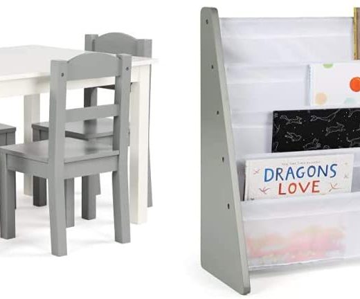 Be the first to review “Humble Crew Kids Wood Table & 4 Chairs Set, White/Grey & Crew Kids Book Rack Storage Bookshelf, Grey/White” Cancel reply