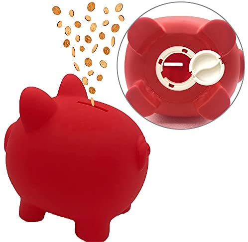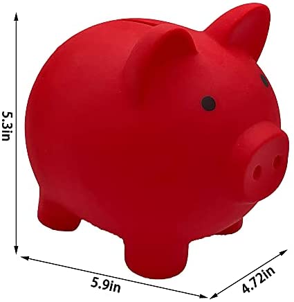 Huo Yuan Cute Piggy Bank, Childrens Plastic Fall-Proof Currency Bank, Boys Coin Bank, Girls Coin Bank, Childrens Toys Birthday Gift.(Red) (XZ005)