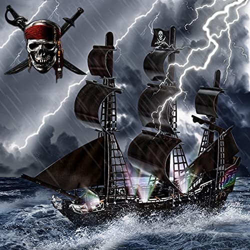 HUOQB LED The Queen Annes Avenger 3D Puzzles Vintage Modern Style Sailing Ship Model Kits,DIY Assemble Toy,Model Kit Desk Decor Sailboat Vesselfor Adults and Kids 111 Pieces