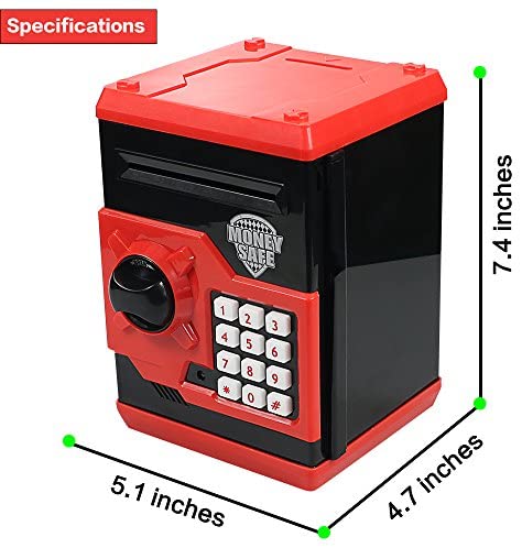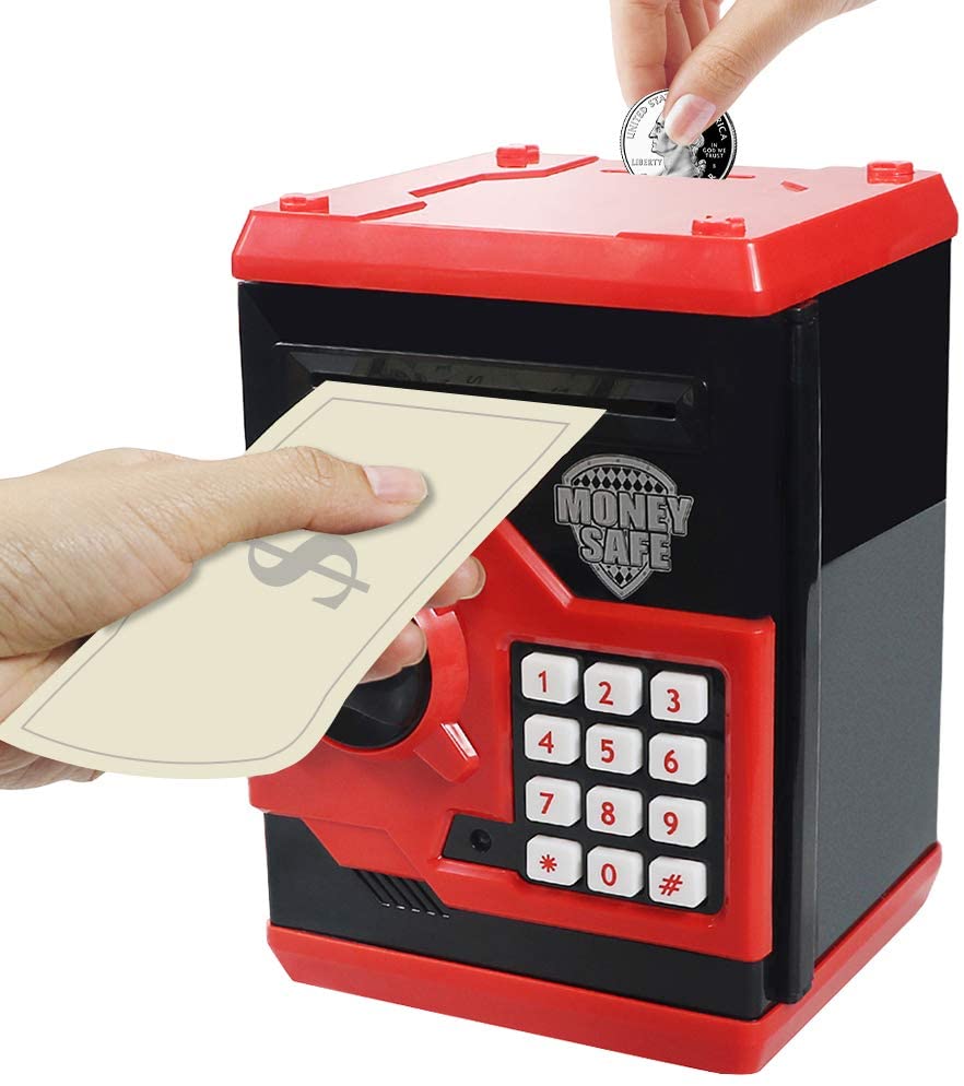 HUSAN Great Gift Toy for Kids Code Electronic Piggy Banks Mini ATM Electronic Coin Bank Box for Children Password Lock Case (Black/Red)
