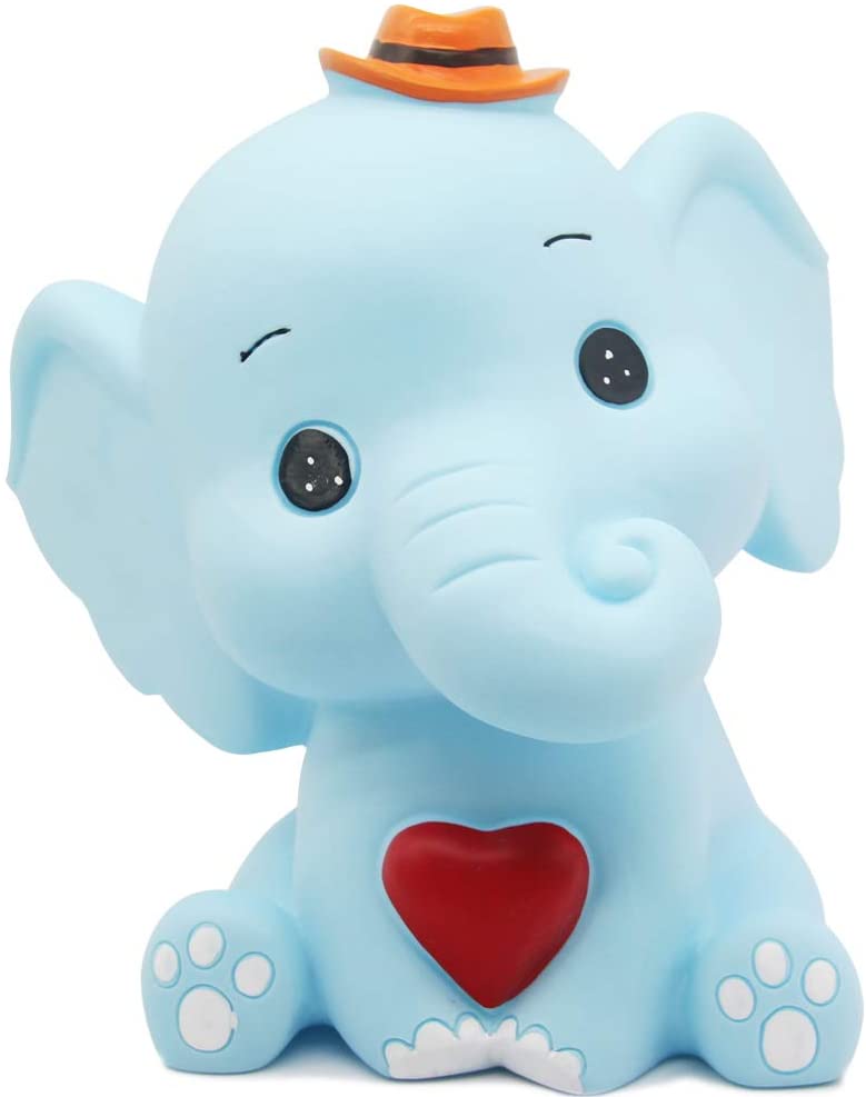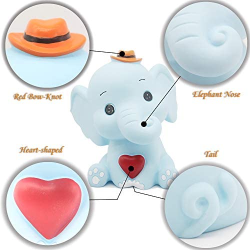 SPECIFICATIONS:18 x 14 x 22cm / 7.2 x 2.2 x 5.8 inch (L x W x H) This very cute elephant coin bank has vivid shape, which can be naturally integrated into your home design and bring fun to your life. It ensures both the artistic appearance and the huge coin capacity. It can hold up to 1000 coins at most. There is a withdrawal port at the bottom.You can open it by rotating the lid and take out the money when its full. Makes a great gift for baby showers, baptisms, christenings, birthdays, holidays, and more. Add your babys first coins to this adorable piggy bank. Kids will love learning to save their money as they fill up this special piggy bank. Its a lovely gift or a perfect addition to any collection, and a great gift for children as a birthday gift or a Christmas gift. In the childrens childhood, each child needs to have a piggy bank, which can teach them how to save money and make good financial planning, which is very helpful for the childs growth.
