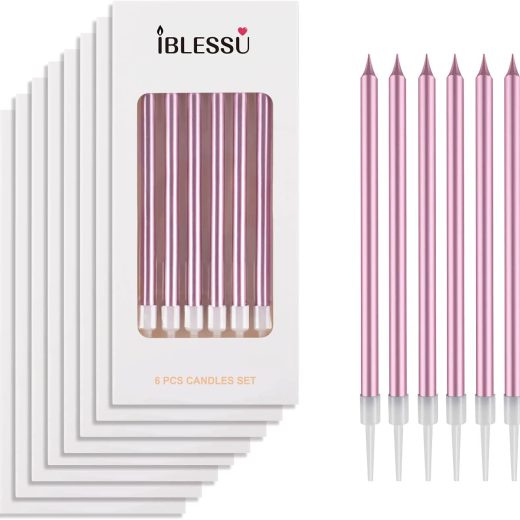 IBLESSU 48 Pcs Birthday Candles-Long Thin Cake Candle Cupcake Candle Sticks in Holders for Birthday, Anniversary, Wedding , Party Decoration (Rose Gold)