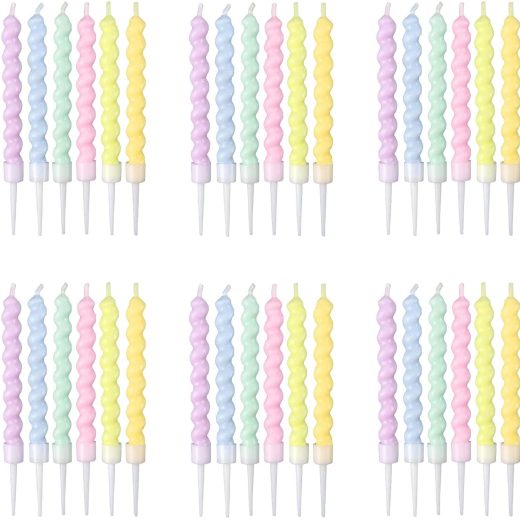 IBLESSU Rainbow Spiral Birthday Candles, 36Pcs Happy Birthday Candles Topper Decoration for Kids Adults Party Candles, Cake Candles