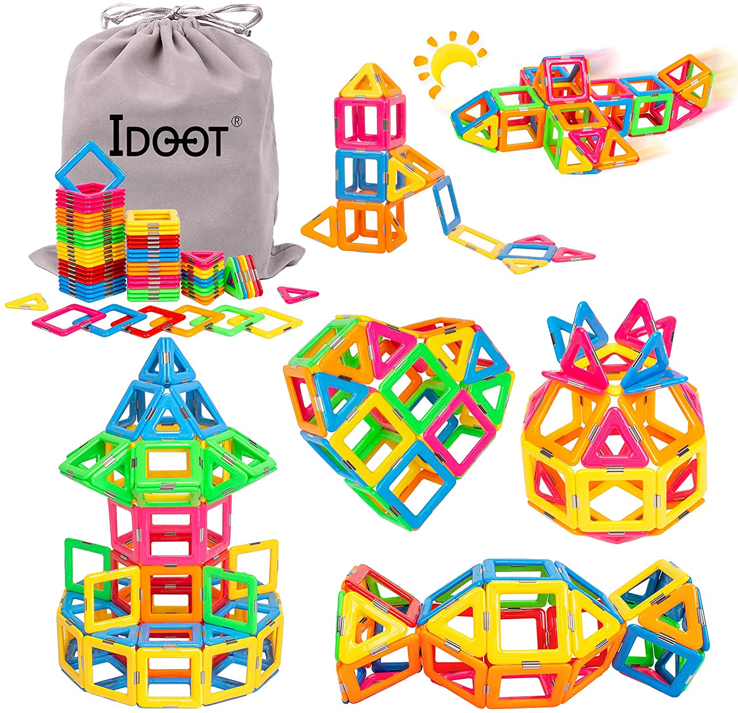 idoot Magnetic Tiles Building Blocks Toddler Toys Magnets for Kids,70PCS Magnetic Blocks STEM Building Toys for 3+ Year Old Boys Girls Educational Games Stacking Blocks Gifts