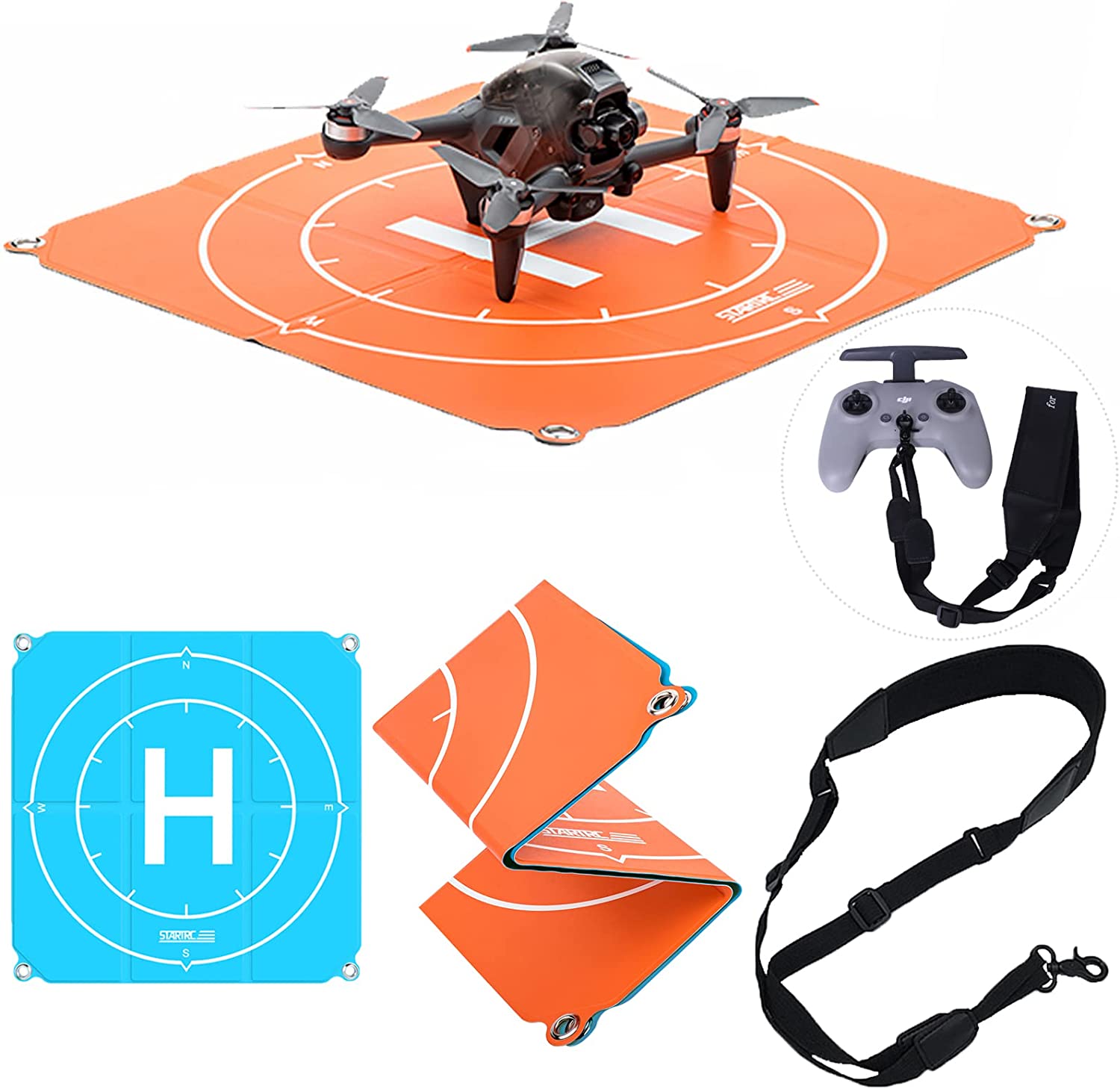 Warm Reminder: The combination of landing pads and lanyard is suitable for DJI Mavic 3 / Mavic Pro / Mavic 2 Pro / Zoom / Mavic Air / Mavic Air 2 / Air 2S / Mavic Mini / Mini 2 / Mini SE / Spark / FPV, ect. The lanyard can only be used for remote control with lanyard buckle or mobile phone / tablet holder with lanyard hole. If your drone remote control, mobile phone holder or tablet holder does not have a buckle, you need to add an additional buckle to use the lanyard.