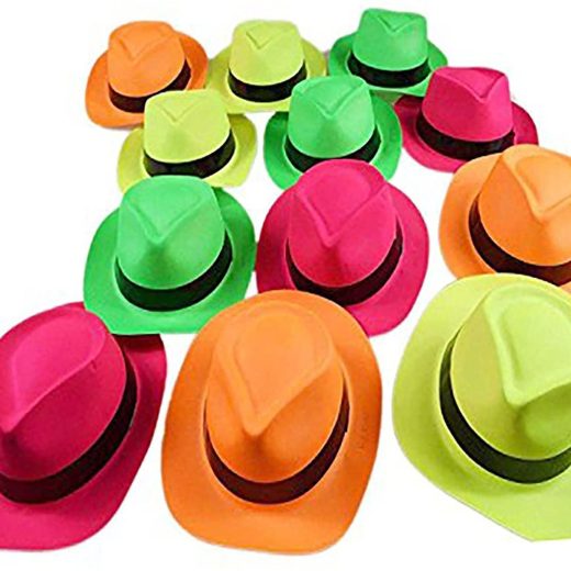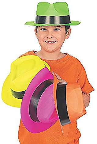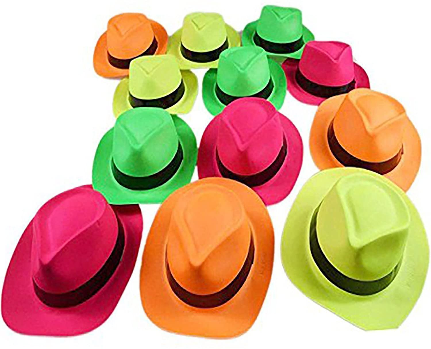 Ifavor123 Pack of 12 Bright Neon Color Plastic Gangster Hats u2013 Themed Party Fedora Hat Accessor