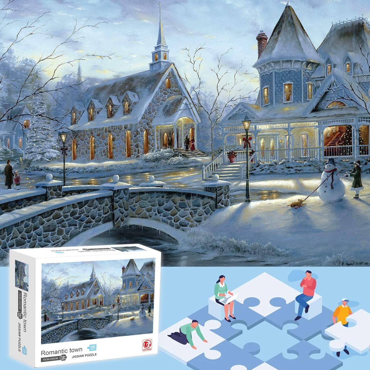 1000 piece jigsaw puzzle,the dividing lines are clear, and there is no odor. Includes bonus poster for help in solving (other stores may not come with it).Manufactured from premium quality materials .The pictures are colorful, with advanced premium printing technology, Puzzle size is 70*50cm (27.56×19.69 inches). Its a perfect gift choice, especially for adults or children over 14. Snow View Puzzle is the best gift for Christmas, Halloween, Easter, birthday, and other festivals. Puzzles are fun on your own, or with family and friends, Its a game that increases brain volume and eye/hand coordination.Enjoy your time of wholeheartedly concentrate on puzzle solving.Enjoy family time while everyone is interacting together. Have fun and relax. Develop a closer relationship with others and create a joyful atmosphere. Puzzles are also used to boost cognitive skills, improve imagination, release pressure. Back sides of puzzle pieces are marked with English letters and divided into areas.It is convenient to check whether the splicing is correct. Also,When finished, it can be mounted for decoration, add a photo frame to become a mural, hanging handmade art in your home.Waring: Not Suitable For Children Under 3 Years Due to Small Parts!