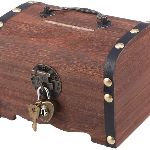 ifundom Piggy Bank, Wooden Money Storage Box Treasure Chest Piggy Bank Handmade Jewelry Organizer