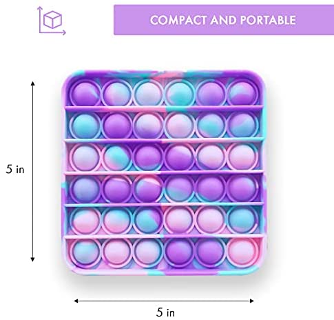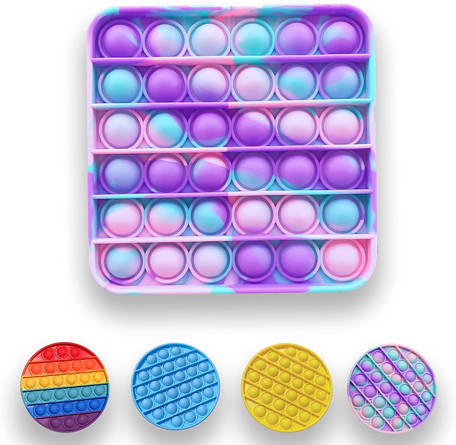 IKYMO Push Bubble Fidget Toy, Pop Fidget Sensory Toy, Silicone Pressure Relieving Toy, Anti-Anxiety Toys, Autism Special Needs Toys (Pink&Purple&Blue, Square)