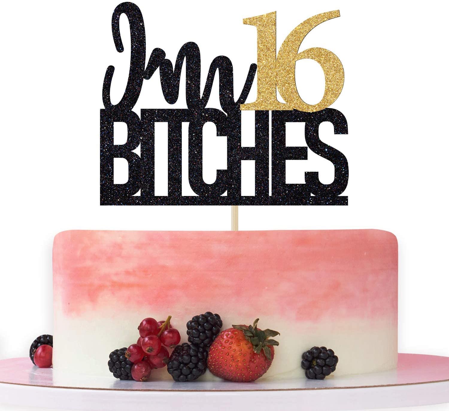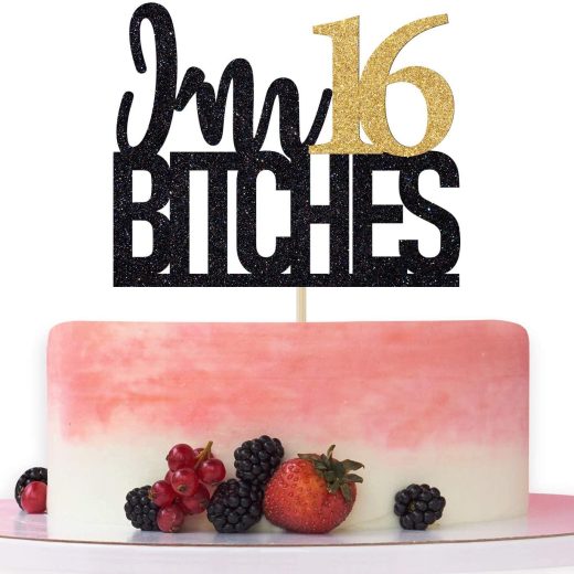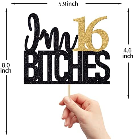 Im 16 Btches Cake Topper, Cheers to 16 Years Birthday Decor, Happy Sweet 16, Happy 16th Birthday/Anniversary Party Decorations Gold Black Glitter