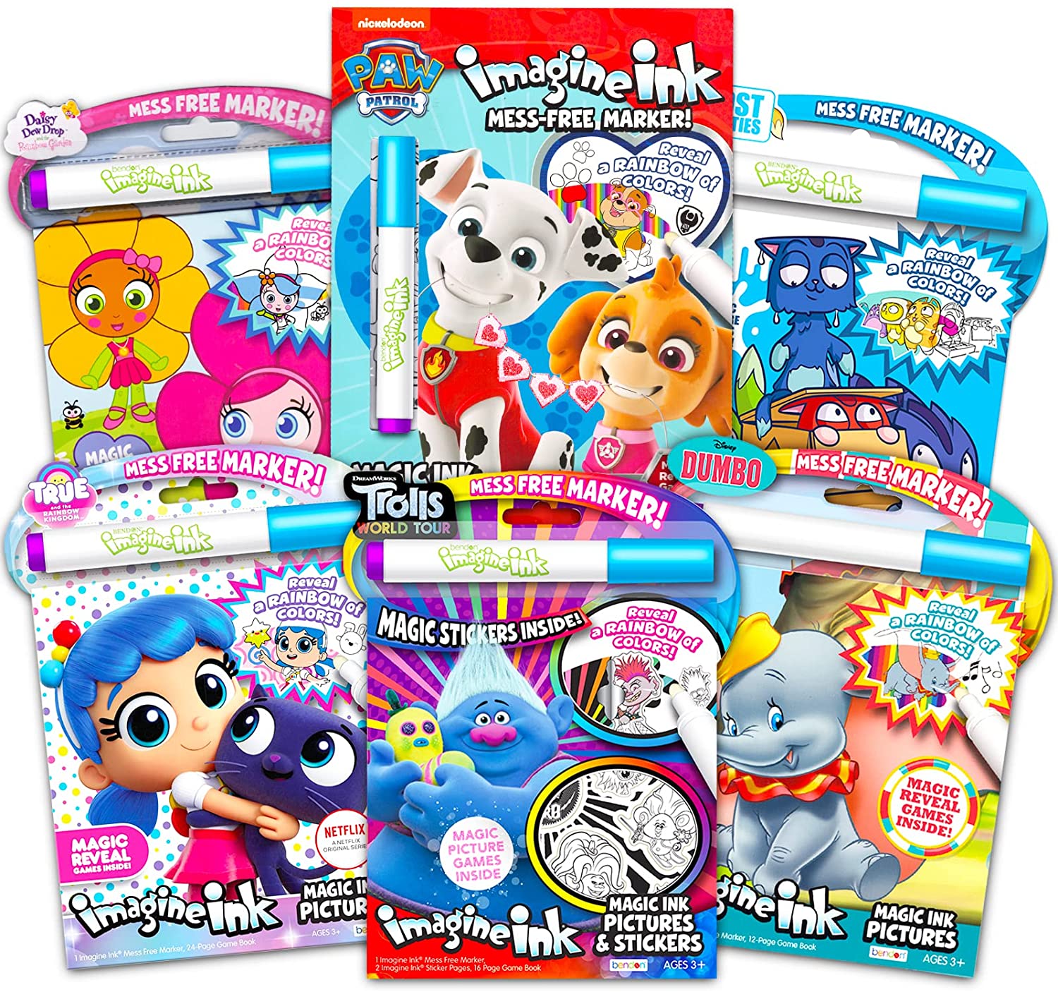 Imagine Ink Coloring Book Set for Kids – Bundle with 6 No Mess Coloring Books Featuring Dumbo, Trolls, Paw Patrol and More (Girls Party Favors)