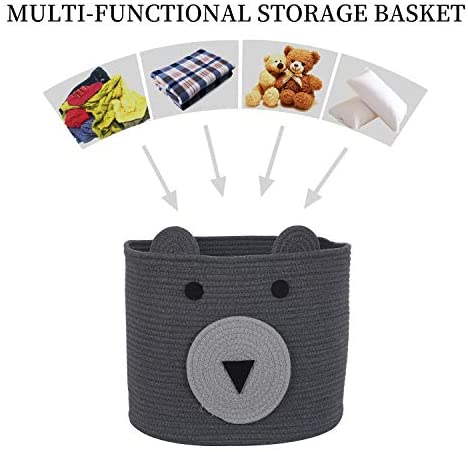 Safe and Health MaterialThe rope basket toy storage is made of natural material without any harmful chemicals or additives, super safe for your kids and pets, great gift for your loved ones on birthdays and holidays. Multipurpose Storage BasketThe woven basket is spacious enough to accommodate a variety of items including clothes, kid’s toys, blankets, and pillows for your laundry room, bedroom, nursery, or living room. Durable and Cute DesignThe cute bear basket is durable and built to last for years. The rope will not separate, fray, or fall apart for its solid construction. Feel at ease to use for your every need and make your home well organized. Decorative BasketThis baby bear storage basket comes with classic colors that perfectly incorporates into your room decor and goes well with your personal preference. 1 Year WarrantyWe are confident about the quality of our baby basket. If you, for whatever reasons, don’t like the laundry basket, please feel free to contact us and we will, with 24 hours, arrange a full refund or a replacement without any questions asked.