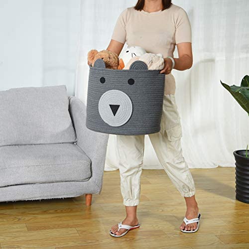 InfiBay Bear Basket Storage Bin, Toy Storage Basket, Baby Clothes Hamper, Cotton Rope Woven Basket for Nursery, Baby Toy Bin Storage, Nursery Basket Organizer, 16u201d(D) x 14u201d(H)