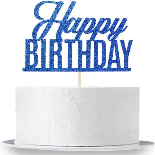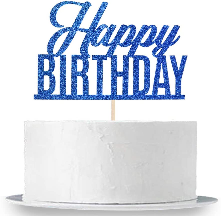 INNORU Blue Glitter Happy Birthday Cake Topper, Anniversary Party, Birthday Sign Cake Topper, Adults Children Teenager Birthday Party Cake Decoration Supplies