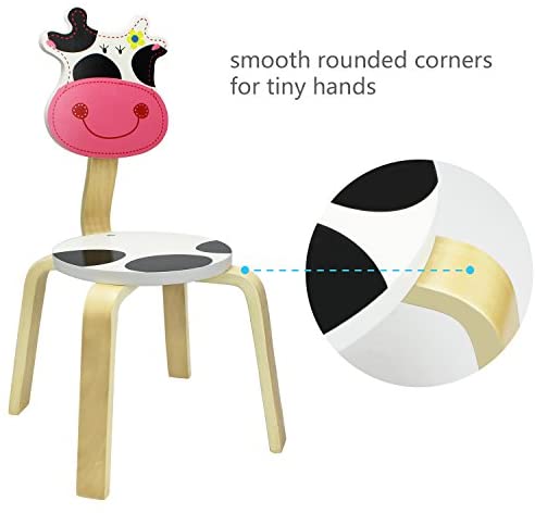 iPlay, iLearn 10 Inch Kids Solid Hard Wood Animal Chair, Stackable Wooden Finished, Preschool, Daycare, Bedroom, Playroom, Nursery Seat, Cow Furniture Stool for Toddlers, Children, Boys, Girls
