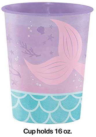 8 Iridescent Mermaid Party 48 oz Favor Cups Decorative cup holds 16 oz Made of premium plastic allowing for reuse Perfect for iridescent mermaid-themed parties Can be coordinated with any of our other Iridescent Mermaid party supplies