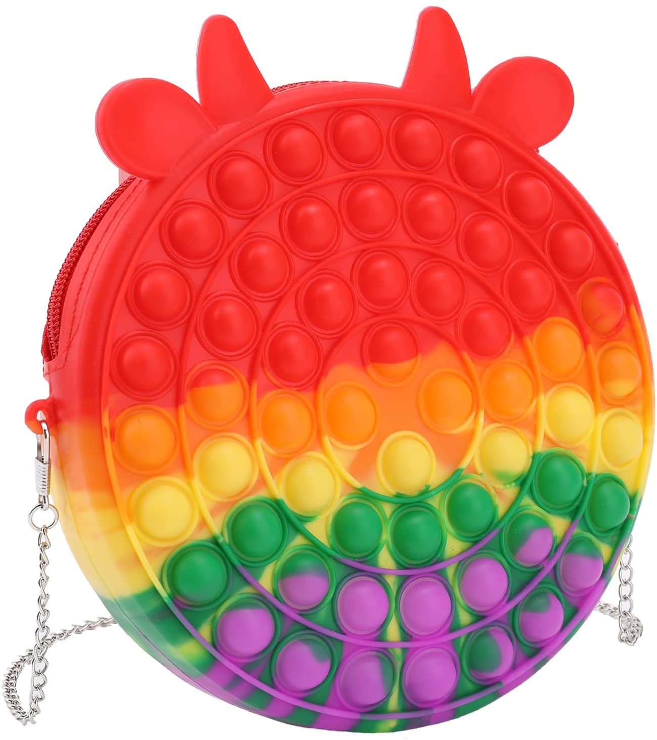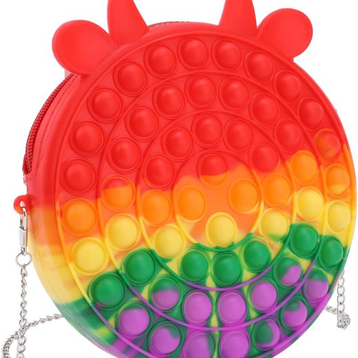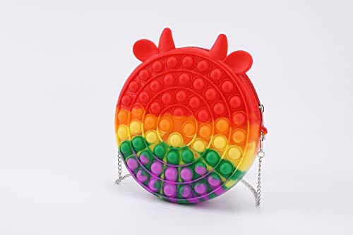 iTechjoy Pop Fidget Purse Bag for Girls Cute Cow Kids Mini Crossbody Shoulder Bags Toy School Supplies Rainbow Fidgit Handbags Silicone Purse Toys