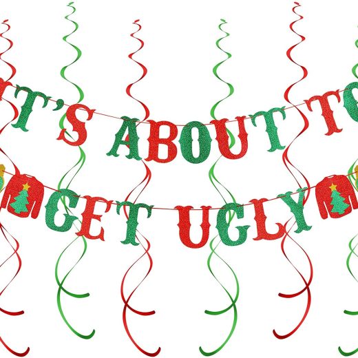 What you will get: 1pcs red&green glitter its about to get ugly banner and 6pcs red&green hanging swirls,glittery material adds a high-end feel to …