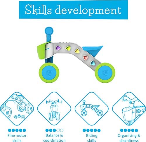 Itsibitsi Blocks, 4-Wheel First Ride-on for Kids 1-3 Years with Storage Basket and playblocks, Steering Limiter to Prevent overturning, Lightweight and Easy to Carry, Blue