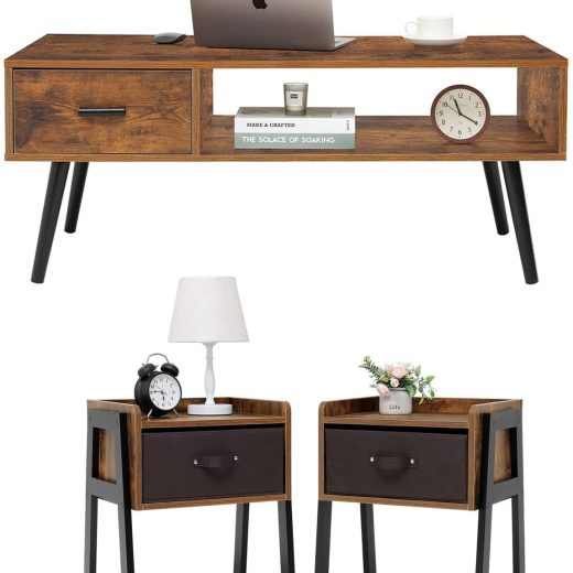 Be the first to review “IWELL Mid-Century Boho Coffee Table & Nightstand Set of 2, 2 Piece Furniture for Living Room, End Table with Drawer, TV Console, Office Sofa Table, Cocktail Table” Cancel reply