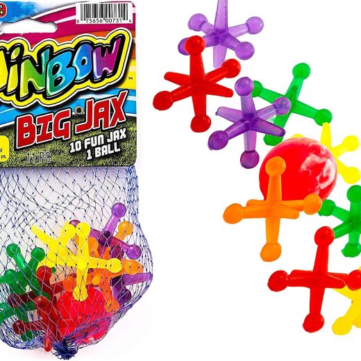 Master Pack of 1 Sets of Jaxs!. Rubberized jacks are easy to toss and pick up!. Comes with 1 additional collectable JA-RU exclusive Bouncy Ball. A fun game for all ages. Educational toys that help children and adults, Boys and Girls learn. Bulk Baying is Saving. Jack Game is a Classic Vintage Retro Game . Set contains 10 Jacks 1 high bounce ball. – The Rubber Jacks and Ball are easy and safe to handle and fun to play with. Colorful Neon Rainbow Set of Jacks. Jumbo Jacks are a nostalgic favorite just like tiddly winks classic game among children and adults alike. This is just like the game that kids have been playing for generations. USA by JA-RU. Top Quality & Safety Standards. Party Favor, Bulk, Planner Supplies, Bag, Prizes, Goodies, Stocking Stuffers, Birthday Bag or Box Reward, Easter Basket, Carnival, Christmas, Halloween.