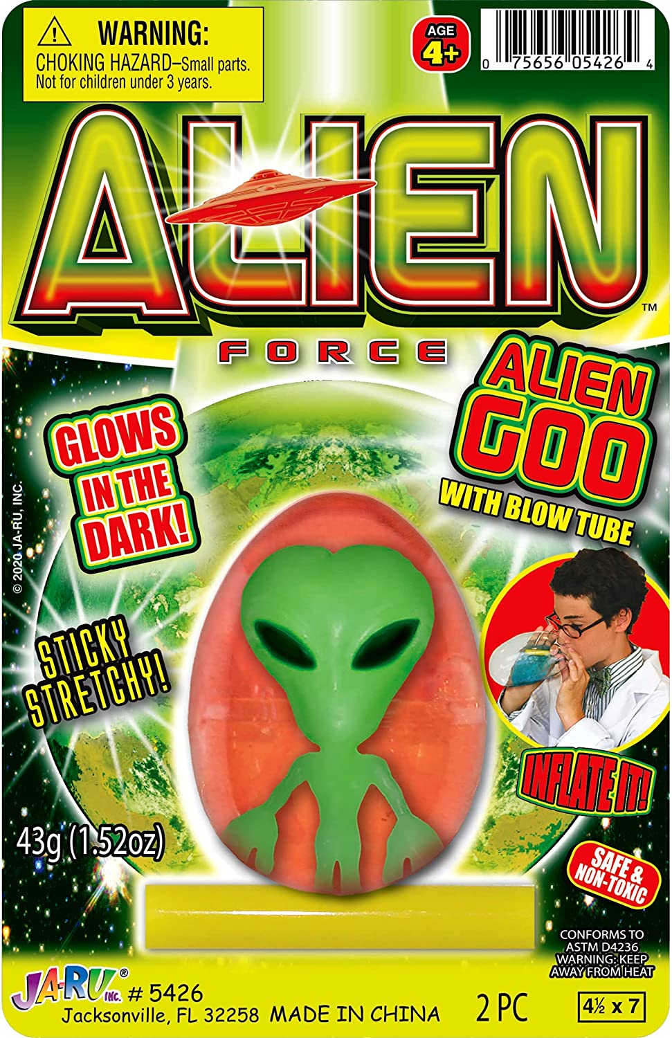 JA-RU Inflatable Glow in The Dark Egg Slime & Alien Figure (1 Pack) Neon Gooey Fidget Toy Slime Kit Putty Sensory Tactile Stimulation Educational Toy Stress Reliever Party Favor, Science 5426-1