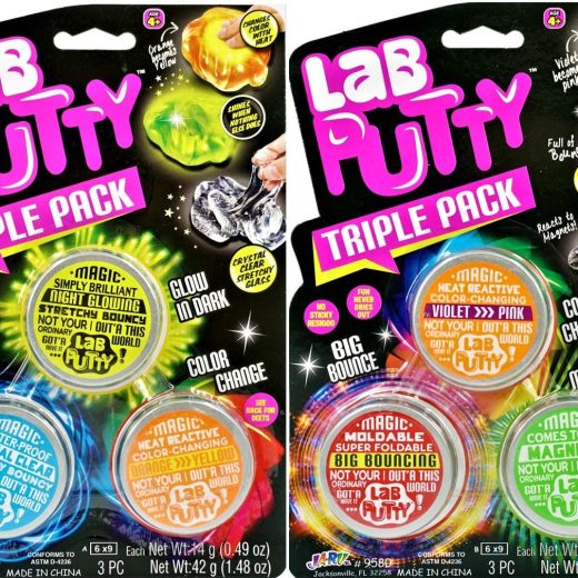 2 Packs 6 Units Assorted Styles: Heat Reactive Color Changing Putty, Glow in the Dark Putty, Magnetic Putty with Magnet, Crystal Clear Putty, Uv Reactive With Flashlight. Super-malleable Bouncing and squishy putty, packed with Lots of Fun. Make your Smart Lab Putty Game Toy portable and long lasting with a Tin Case included. Also Comes with 1 Collectable JA-Ru bouncy Ball. Great Sensory Experiential Learning Toy. Prime, Tactile Game, Quiet Toys, Physical Occupational Therapy, Vacation. Stress Relief and Release, Calming, Relaxing, Focus, Concentration, Autism, Anxiety, Sensory toys, Church, Memorial Day Sale, Independence, Classroom Box, Easter Basket, Planner Party Supplies, Treasure Chest Box, For Children Kids Boys or Girls And Adults. USA JA-RU. ASTM Tested. Top Quality