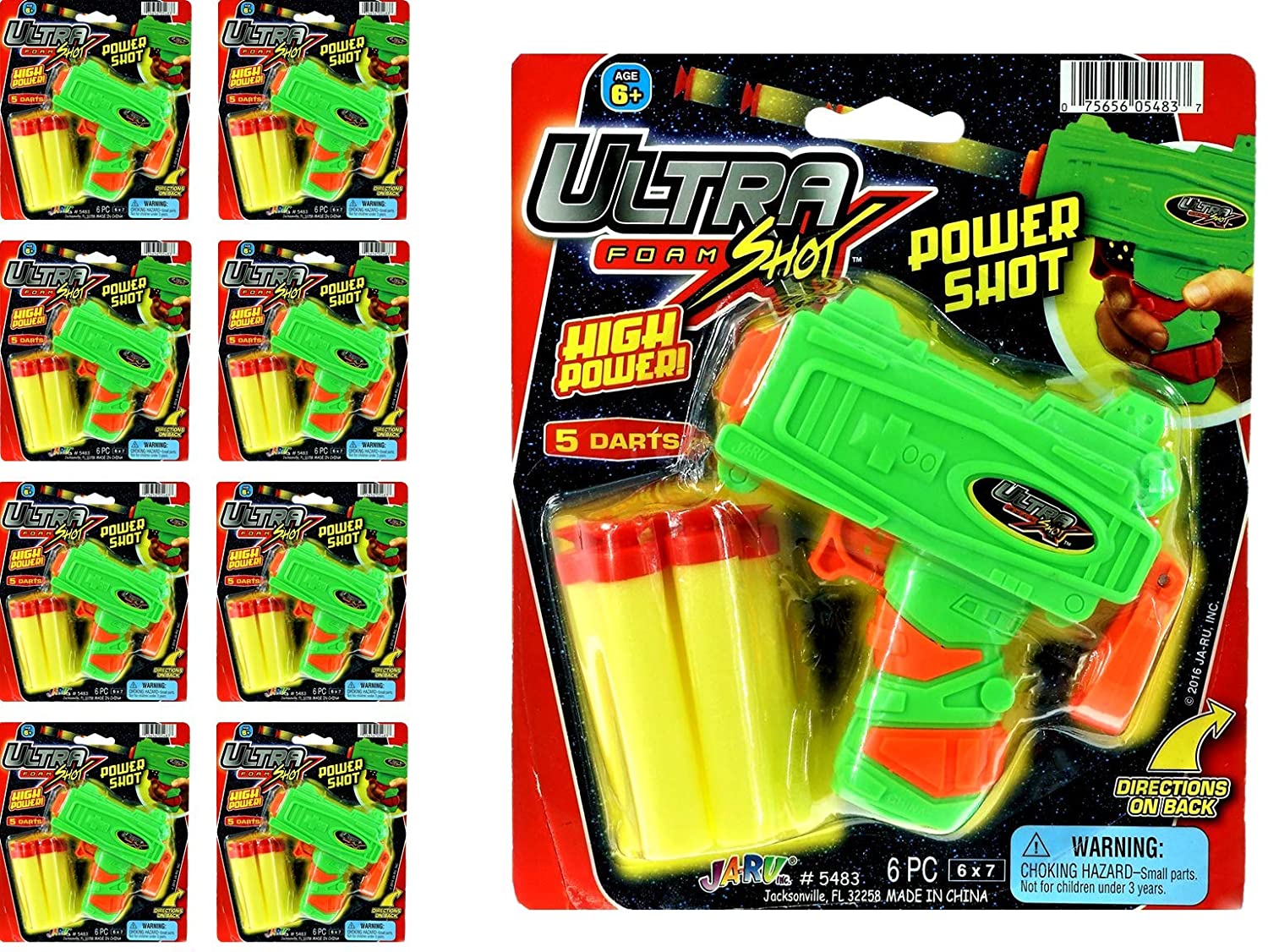 8 Sets Individually Packed of Ultra Foam Dart Gun Super Powerful Blaster Toy Guns for Boys and Girls JARU Great for Party Favor Games Celebrations Plus 1 Small JA-RU Bouncy Ball Fire with Ultra Mega Force Fast-firing Ultra Foam Shot toy blaster that shoots darts up to 95 feet (28 meters). Great for Kids and Adults. Fortnight Toys; Best dart guns for Kids Adults Boys and Girls Super Long Fast and Accurate Shots and EASY TO USE; Play and compete with friends and family, Reload Fast and Easy. Boys, Girls, Kids, Adults, will love it NO COMPETITION WILL STAND OUT; No one will Believe this small and inexpensive gun has more Power than Most big Ones AMAZING Strike Super Elite Rampage Blaster gun Pack Stress Relief and Release Calming Relaxing Focus Concentration Autism Anxiety Sensory toys Church Memorial Day Sale Independence Classroom Box Easter Basket Party Planner Supplies Treasure Chest Box for Children Kids Boys or Girls and Adults USA JA-RU ASTM Tested Top Quality & Safety; Great Party Favor Giveaways Prizes Goodies, Stocking Stuffers Rewards Incentives Pinata Filler Birthday Bag Carnival Christmas Halloween Valentines Summer Camps ADD ADHD Cool Stuff Toys in Bulk