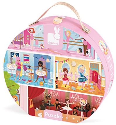 Discover the process of preparing for a recital from a ballet Dancers point of view – as the puzzle is assembled Youll start to understand the life of a tiny dancer It begins with classes and stretching before moving on to practicing with friends getting ready and then finally the big performance! Durable adventure jigsaw that is fun to explore– the dance Academy puzzle is made of sturdy cardboard that can withstand the demands of little hands Each piece is colorful and pays close attention to detail The reliable Hatbox case includes a fabric handle so you can take it anywhere you may travel Childhood development through play – promote the enhancement of fine motor skills creative memory task completion association hand-eye coordination mental speed patience concentration and independent play Puzzles have also been shown to reduce anxiety by taxing the brain Leading wooden and cardboard toy – Janod has a long history of designing award-winning timeless toys puzzles and building sets for families around the world Instant classics but they always look modern and above all are functional Provides good clean screen-free fun Meets all European and American Safety standards with focus on craftsmanship and quality – quality and safety is the most important part of our designs at Janod Our toys are traditional in concept but “Contemporary European” in design and all of our timeless products are made with a distinct focus on craftsmanship quality and education
