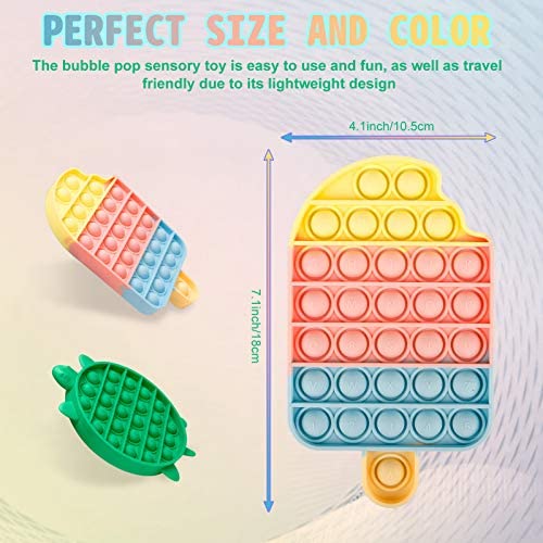 Jasilon [Newest Design] [UPGRAED Material] 2PCS Push Bubble Pop Fidget Sensory Toy, Autism Special Needs Silicone Stress Reliever Toy, Anti-Anxiety Squeeze Sensory Toy for Kids (Turtle+Icecream)