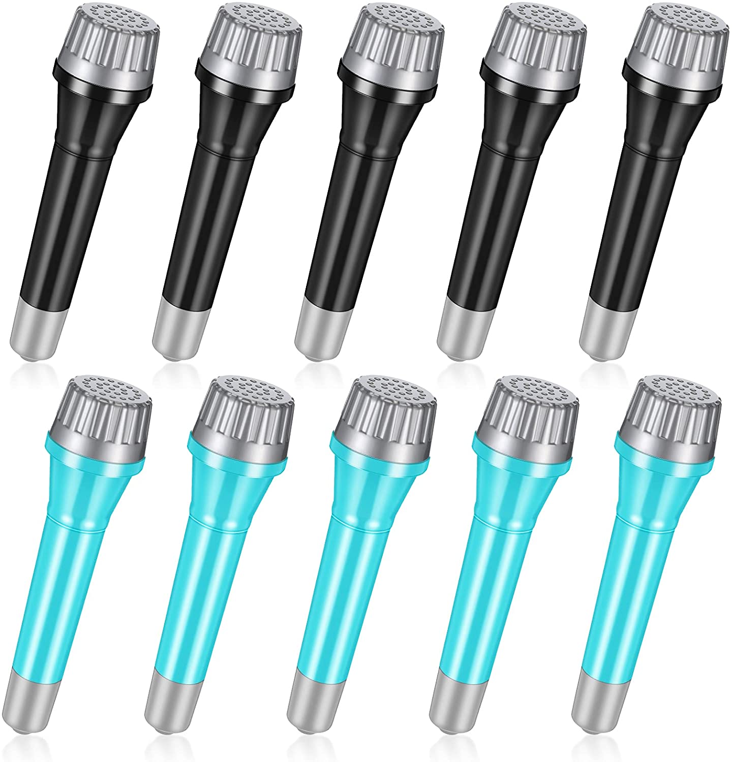 Jerify 10 Pieces Plastic Toy Microphone Set for 5.7 Inches Fake Microphone Toy Pretend Play Karaoke Props for Boys Girls Halloween Birthday Party Supplies, Black and Blue Colors