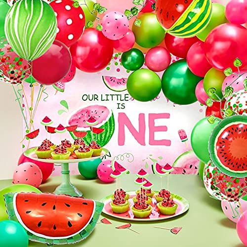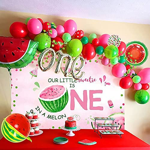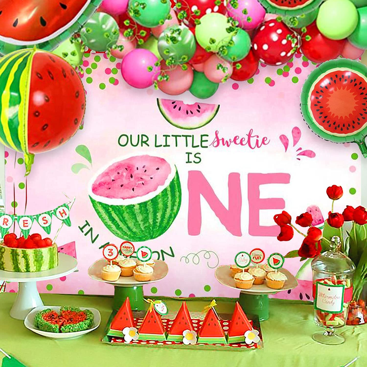JeVenis 107 PCS Watermelon First Birthday Decoration One in a Melon Party Backdrop One in a Melon Party Decoration One in a Melon Banner Watermelon Party Supplies