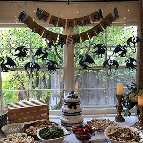 Dragon ThemedThe dragon birthday decors are ideal for dragon themed birthday party, performance themed party, graduation party, Halloween party, etc.; You can create more funny ways to use these cute party hanging swirls, toppers and banners, while leaving you a happy time together with families and friends Birthday PartyOur production is designed for dragon themed party. The material is sturdy which makes it convenient and simple for you to operate, just need to hang it anywhere from your ceiling, window, mantel, overhangs, doorway, Decorate Your Home!For most occasions: these dragon hanging decorations can create an interesting atmosphere, can give your guests joy in different occasions; They are well applicable for birthday parties, get-together, showers, picnic, Thanksgiving, Christmas, home parties, festivals, catering, outdoor events or just eating at home Package Included15 x Black Dragon hanging swirl banner. Size as the picture shows. JeVenis Service100% money refund or replace if you have any question about our product. Please purchase with confidence. For more products, please visit JeVenis!