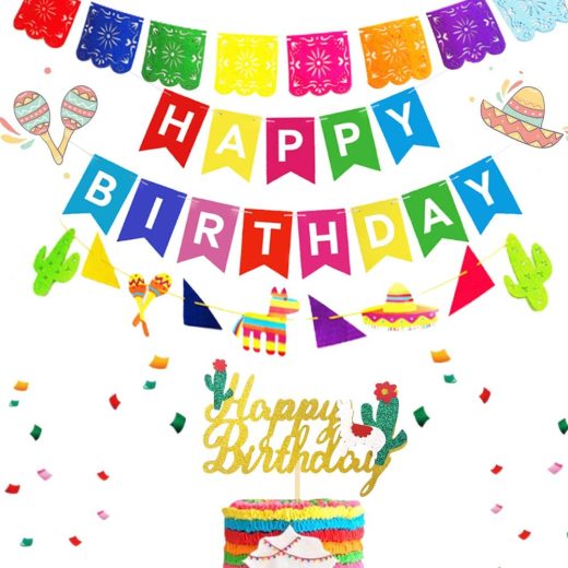 Use this fun Fiesta Party banner to brighten up your FIESTA! Decorate your main table or hang it as a backdrop! Anywhere to put it, you’re guests will admire! Add Beautiful and bright colors to your fiesta party with this Happy Birthday Banner! The letters are glitter gold and are made to “pop out” for a amazing look. Each pennant measures 7.87 inch x 6.3 inch. String length: 10 ft. Colors include pink, yellow, blue,green, and purple. Perfect for adding a little flair to your Mexican themed Birthday Party. They will make your Mexican perfect. Package Included: 1 x happy birthday banner, 1 x garland. 1 x cactus and pinata garland.1 x cake topper. Size as shown as picture.