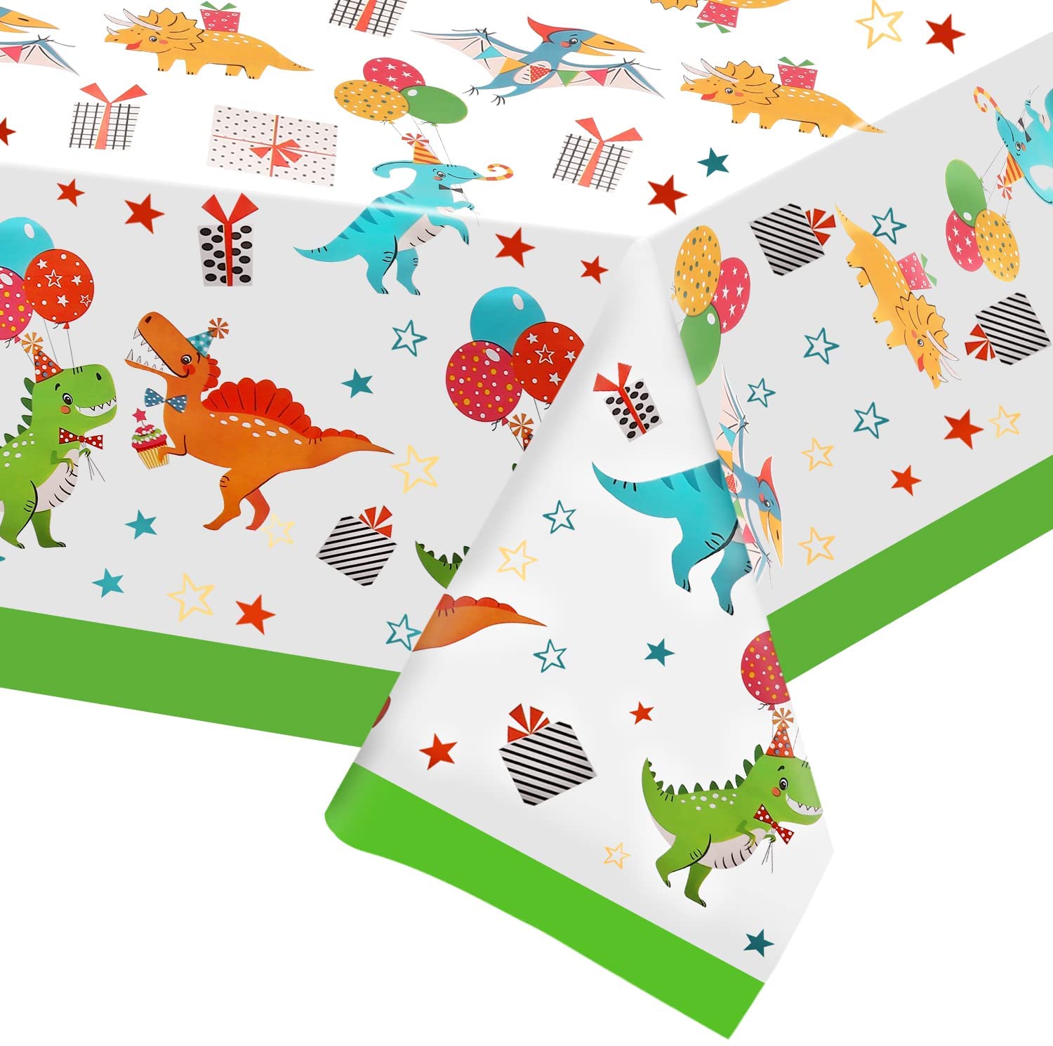 CUTE DINOSAUR TABLECLOTHS: This dino party tablecloth is unique design with dinosaurs, balloons, stars, gift boxes and ice cream pattern. Vivid characters and colorful style can easily create a relaxing and joyful birthday party atmosphere. SAFE MATERIAL: The dinosaur table cover for birthday measures 52 x 72 inches. It made of quality material, with splash-proof, stain-proof and waterproof functions, it is easy to remove any messy spills! SAVING TIME: The dinosaur table cloth is disposable, you just clean up the mess after party in seconds and save more time to enjoy the party with your kids! DINOSAUR THEMED PARTY: The dinosaur tablecloth is suitable for birthday party, tropical party, jurassic theme party, dinosaur party, baby shower and other outdoor indoor parties. WORRY-FREE AFTER-SALES SERVICE: Customer satisfaction is our service tenet. Please feel free to contact us through contact sellers if dinosaur tablecloths not meet your expectations.